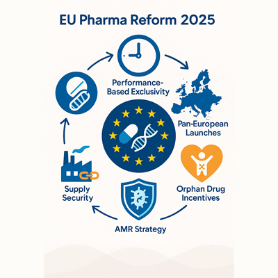 The EU Pharma Reform is reshaping the pharmaceutical landscape across Europe. Following the Council of the EU's landmark March 2024 agreement, this article decodes the shift from fixed-term regulatory data protection to a performance-based system rewarding broad launch and unmet medical need (UMN) focus. It discusses how the reform will affect orphan drugs, antimicrobial resistance (AMR), and supply security and provides a strategic roadmap of market access, pricing, and launch planning in Europe starting in 2026.